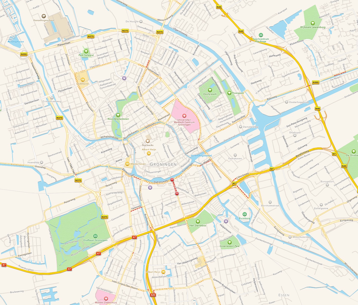 Om het nog erger te maken heeft 050 jarenlang de stad compleet volgebouwd. ‘De Compacte Stad’ heette dit eufemistisch. De werkelijke reden van dit beleid was het opdrijven van grondprijzen en vastgoed. Hoe meer vierkante meters je vol bouwt, hoe schaarser de ruimte, dus hoe duurder. Alles moest en zou in het centrum worden gepropt. Vooral ambtenaren: gemeente, provincie, ziekenhuis, universiteit, hogeschool, allemaal spelen ze hun vastgoedspelletjes. Als RuGjenooitgenoeg een pand bouwt, bouwt de Hanze er ook een. De langste pik. Duur vastgoed betekent lekker hoge WOZ. De werkende Groninger bloedt dubbel: je staat vast in files, of je moet door weer en wind op de fiets, en je betaalt ook nog eens de hoofdprijs voor dit beleid via je belastingen. Als je veel gebouwen op een klein stukje grond zet, ontstaat vanzelf een groeiende mobiliteitsbehoefte. Maar door de links-socialistische autohaat is er nooit in goede infrastructuur geïnvesteerd.