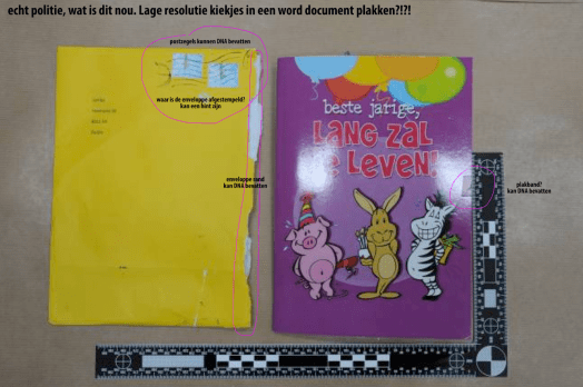 We beginnen met de analyse van de kaart die naar Zwolle is verzonden. Maar politie. Echt. Even een opmerking. Kiekjes in lage resolutie in een Word document plakken. Mijn klomp brak! Opklik voor groot.