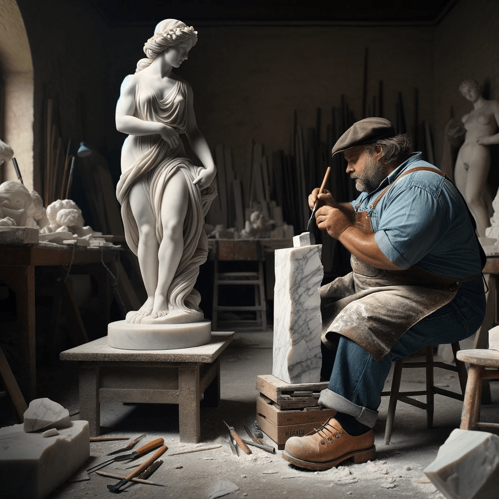 Hij had ter plekke een marmeren standbeeld van haar gemaakt, als hij de finesse van Michelangelo had gehad. Maar ja, deze grove knoestige boerenhanden waren alleen geschikt om aan trekkers te sleutelen.
