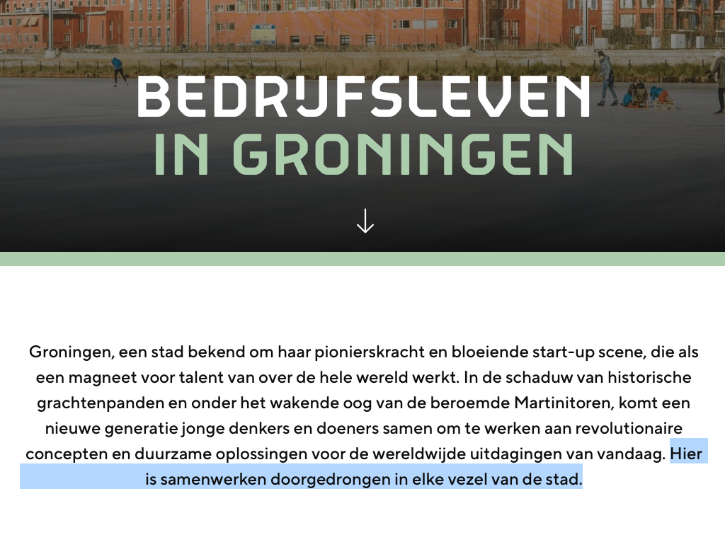 Nog saillanter is dat het Akkoord van Groningen wel pocht met de successen van het bedrijfsleven, waar ze zelf nauwelijks een serieuze rol in hebben gespeeld: https://groningen.nl/bedrijfsleven-in-groningen.